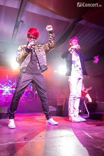 Au cantat diferite melodii,au comunicat cu noi...Eu eram cel mai mult cu ochii pe Kwang Yeon,si pentru ca e preferatul meu din trupa,si pentru ca eram mai mult pe partea cu el!Aveam cale libera la salivat :P.Deci,DA!Arata foarte bine acolo sus Kwang Yeon!Era ca o papusa!Draguta si inocenta,pana a inceput sa ne transmita talentul lui prin chitara lui alba,parca.Ca un adevarat rocker.Cei ce au fost la concert,stiu asta!Au cantat toate melodiile lor+ceva de la Justin Bieber.Mi se pare ca era "Baby" dar nu mai stiu exact...Si sa va mai reamintesc un pic de prietena mea!Ea s-a bucurat de o atentie mai SPECIALA de la HanByul,IN ADEVARATUL SENS AL CUVANTULUI!Nu stiu cum,dar i-au dat voie lui Valy sa intre mai in fata,astfel incat,ea a ajuns sa spun...mai in fata decat mine.Era exact langa podiumul acela lung.Era acolo in fata,aproape ca putea sa-i atinga...Asa si...e sa vezi???La un moment dat,daca l-ati vazut pe HanByul s-a aplecat pun pic peste scena si si-a coborat un pic ochelarii facandu-i cuiva cu ochiul!!!!Si acea fata norocoasa a fost chiar VALY!!!!WHAAA!Deci imi venea s-o strang de gat :))Abia aflase in urma cu cateva ore la al cui concert merge,si s-a mai ales si cu o surpriza imensa de la vocalistul principal al trupei!Care ati fost mai prin perimetrul acela...Asa e??HanByul chiar i-a facut cu ochiul unei fete mai spunde cu parul lung si cu o jacheta crem?Sigur ea era?Sau m-a mintit?Eu am vazut scena aceasta din departare,dar nu stiu sigur daca ea a fost...Deci,pe langa faptul ca Valy era in al 9-lea cer pe drumul spre casa,nu mai stia de ea.HanByul,gata,era deja preferatul ei!El e cel mai dragut si cel mai tare!