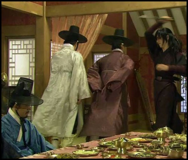 ~.~ Revenind la serial...mi-a placut din primul episod!Episodul 6 a fost episodul de incepul,pentru mine,si a fost de nedescris!I-am cunoscut pe Woon,despre care auzisem multe,iar toate erau adevarate.Imi place foarte,foarte mult de el.Ii sta foarte bine,ca actor in k-dramele istorice.Il prinde genul asta de personaje.Imi place mai mult de el ca Yeo Woon decat ca Chun Chu.Ii sta mai bine ca luptator,decat ca aristocrat.Il admir din ce in ce mai mult^^.Eu una cand il privesc sunt total :P~Trebuie admirat pentru munca lui!Prietenul cu ochelari Cho Rip,foarte amuzant pusti,mai ales cu ochelarii^^Razboinicul nostru,personajul central al acestui serial,Baek Dong Soo,un luptator incepator,destul de bun,dragutz,desigur ca totii tinerii koreeni,si foarte,foarte imatur,gata sa-si dea si hainele dupa el pentru fata iubita.Imi aduce aminte de Iljimae,defapt serialul seamana izbitor de mult cu Iljimae.Personajele sunt asemanatoare.Cei 2 (Iljimae/Baek Dong Soo) arata cam la fel,la fel de imaturi la inceput,dar total schimbati la sfarsit,lupatori excelenti si indragostiti peste cap de o tanara frumoasa,cu care de fiecare data o dau in bara :))Am mai cunoscut-o pe Jin Ju,o luptatoare foarte priceputa la fel ca mama sa.Si,desigur,pe fata care ia fermecat pe cei 2 luptatori ai nostri,calugarita Ji Sun.Acestea ar fi personajele principale ale serialului,personajele mele preferate.